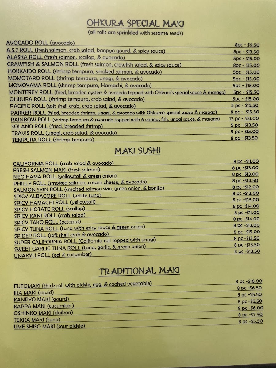 If you're on the hunt for an authentic Japanese culinary experience in Fairfield, CA, look no further than Ohkura. Nestled conveniently outside the main gate to the Air Force Base at 594 Parker Rd, this charming gem may not catch your eye from the street, but step inside and prepare to be welcomed into a clean, quiet, and casual atmosphere that feels just like home.