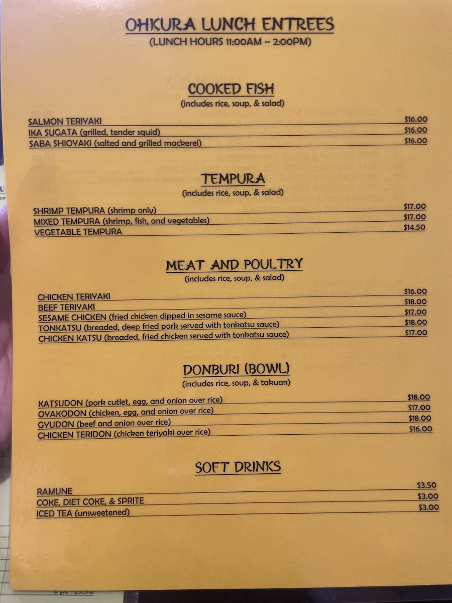 The experience at Ohkura is enhanced by the attentive and friendly service that patrons rave about. Customer 'Kathy M.' described the staff as polite and quick to answer menu questions, creating a welcoming haven for both dine-in and take-out customers. Regulars like 'Tyler Bacon' have been coming to Ohkura for years and appreciate the consistent quality in dishes like the tonkatsu donburi, which he calls 'fantastic, quick and yummy!'